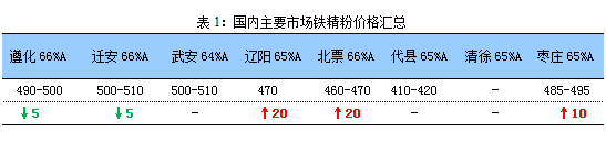 天津港58%楊迪410-420元/噸、澳洲PB粉500-510元/噸、63%巴粗485-495元/噸,