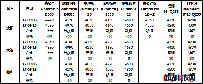 表3:遼寧省部分主導(dǎo)鋼廠調(diào)價(jià)情況匯總表(09.09-09.15)