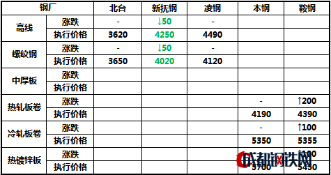 2、鞍鋼、北臺(tái)均為稅前價(jià)格。