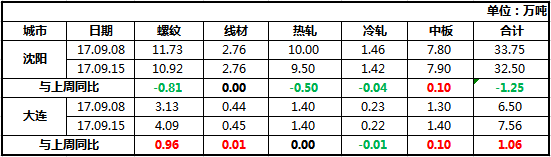 表2:遼寧市場(chǎng)主要品種庫(kù)存匯總(2017-09-15)
