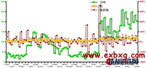 | 9月22日 | 84350元/噸 | 84650元/噸 | -300元/噸 |