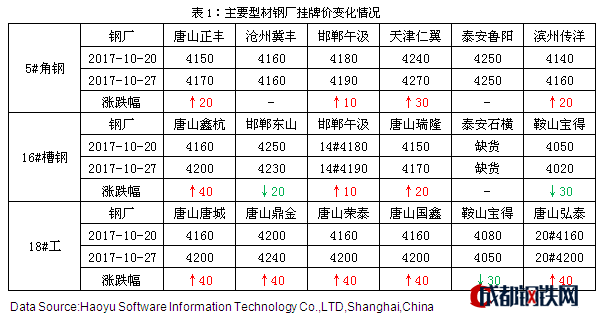 成都鋼鐵網(wǎng)資訊10月27日消息: 本周焦點(diǎn):環(huán)保政策對(duì)于鋼廠(chǎng)生產(chǎn)的限制還在延續(xù),型材市場(chǎng)供給層面壓力不大,給了行情一定的支撐;另一方面,采暖季的到來(lái),使得后期型材的成本面仍有推高的空間,型材成本支撐也有。因此后期市場(chǎng)還是存在一定的利好因素的。比較利空的就是,需求層面難有太亮眼的表現(xiàn),畢竟天氣越來(lái)越寒冷,不利于終端用鋼方面的采購(gòu)。而且現(xiàn)在期貨轉(zhuǎn)弱,鋼坯價(jià)格下跌,導(dǎo)致型市整體氛圍轉(zhuǎn)向悲觀(guān),預(yù)計(jì)下周型市小幅下跌為主。 【內(nèi)容提要】 ◆本周型鋼市場(chǎng):先漲后跌,行情轉(zhuǎn)弱 ◆唐山型材軋線(xiàn)開(kāi)工率仍處低位 ◆市場(chǎng)庫(kù)存有所增加 ◆型廠(chǎng)理論盈利空間有明顯收縮 ◆預(yù)計(jì)下周型市行情小幅下跌 一、市場(chǎng)行情回顧