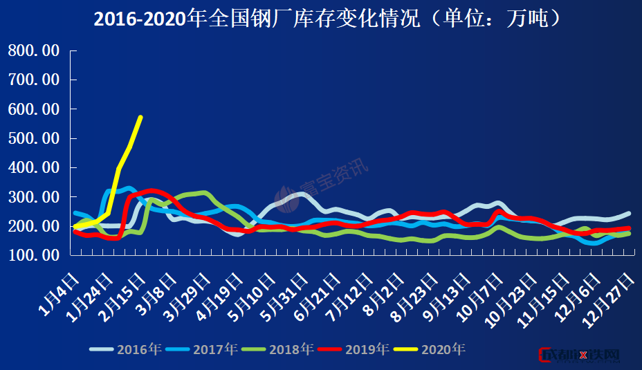 圖3:2016-2020年鋼廠庫存對(duì)比圖