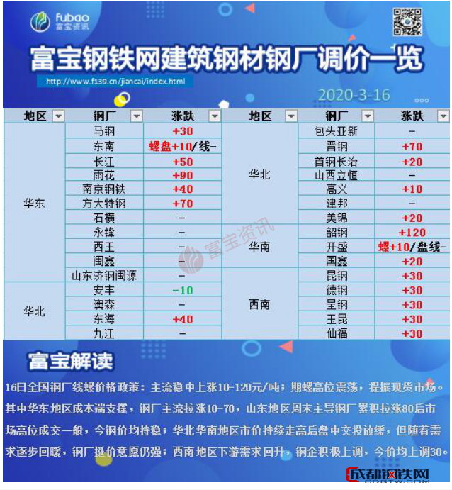 成都鋼鐵網資訊3月16日消息:
