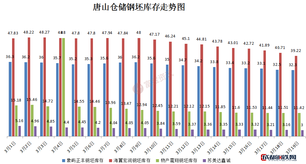 成都鋼鐵網(wǎng):唐山鋼坯庫存總計(jì)85.94,較上周減少9.35,象嶼正豐32.3,海翼宏潤(rùn)39.22,物產(chǎn)震翔庫11.42,蘇美達(dá)鑫誠(chéng)3(萬噸)。