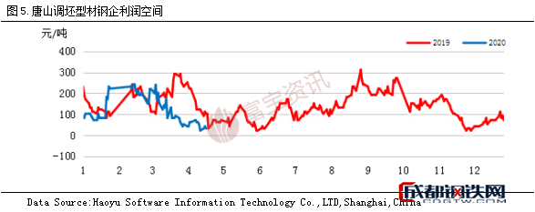 山鋼廠理論盈利空間小幅減少。截至4月30日,唐山鋼坯型材廠家理論盈利為32元/噸,較上周減少30元/噸。